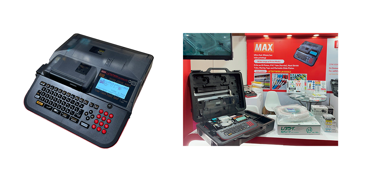 マックスの「レタツイン」は1994年の発売以来、携帯型チューブマーカーのトップブランドとして好評を得ています。機械や設備をコントロールする制御盤や配電盤などの中にある電線を、端子台に正しく配線・メンテナンスできるよう識別表示に使用されています。