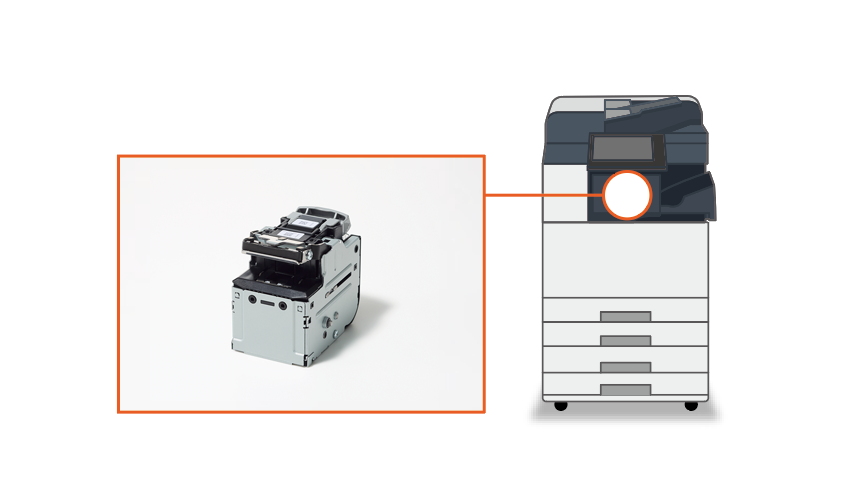 「オートステープラ」はプリント後の自動ステープル機能として、お客様の要望に応えて進化しています。近年では、複合機・プリンターの設置面積を抑えるニーズに対して、複合機・プリンター本体の小型化実現のため、小型・軽量化したオートステープラ製品を開発し、お客様から好評を得ています。