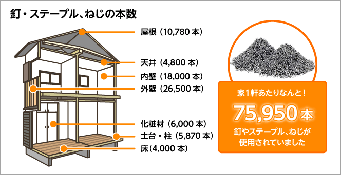- 家一軒に使用される釘