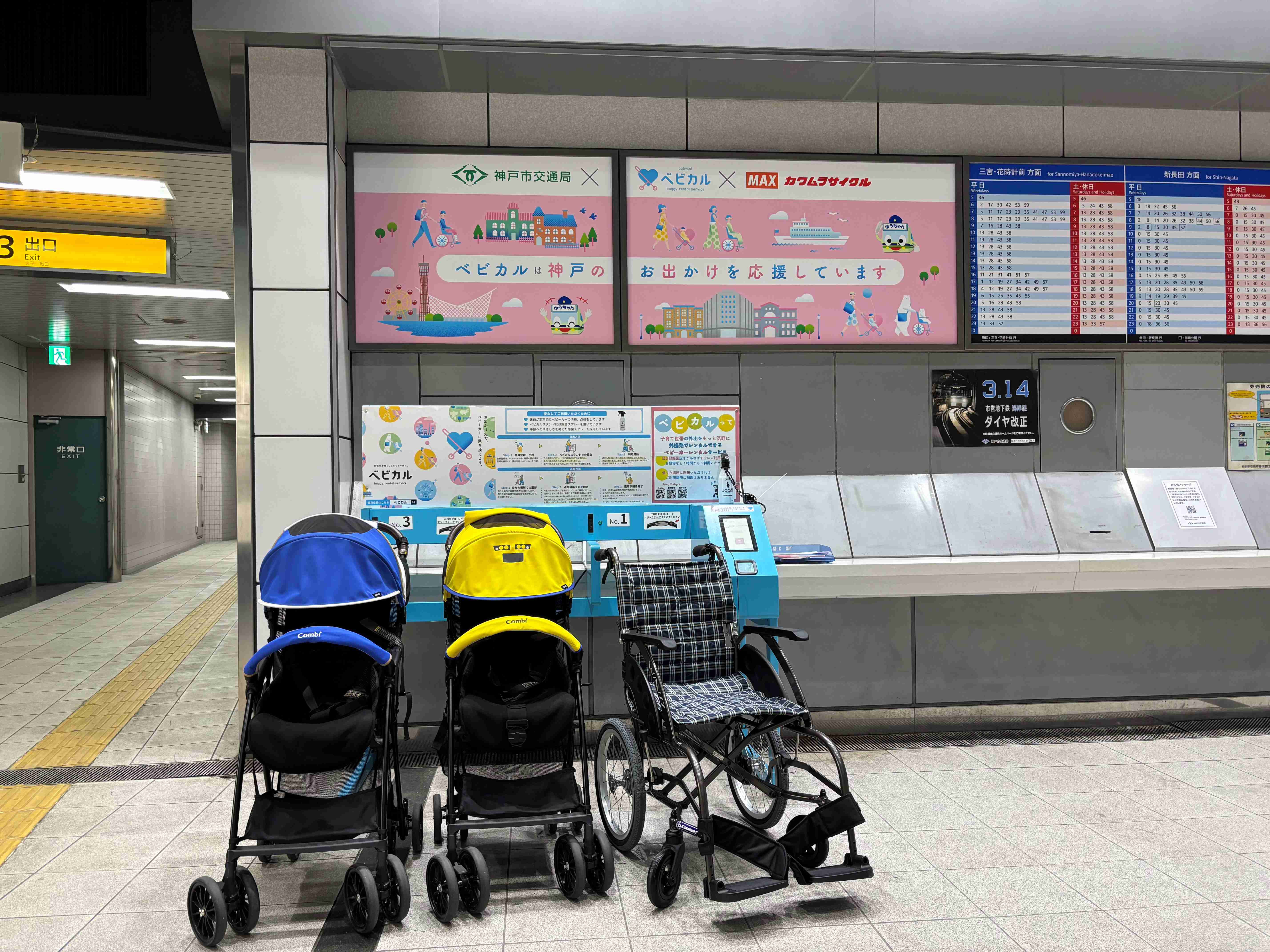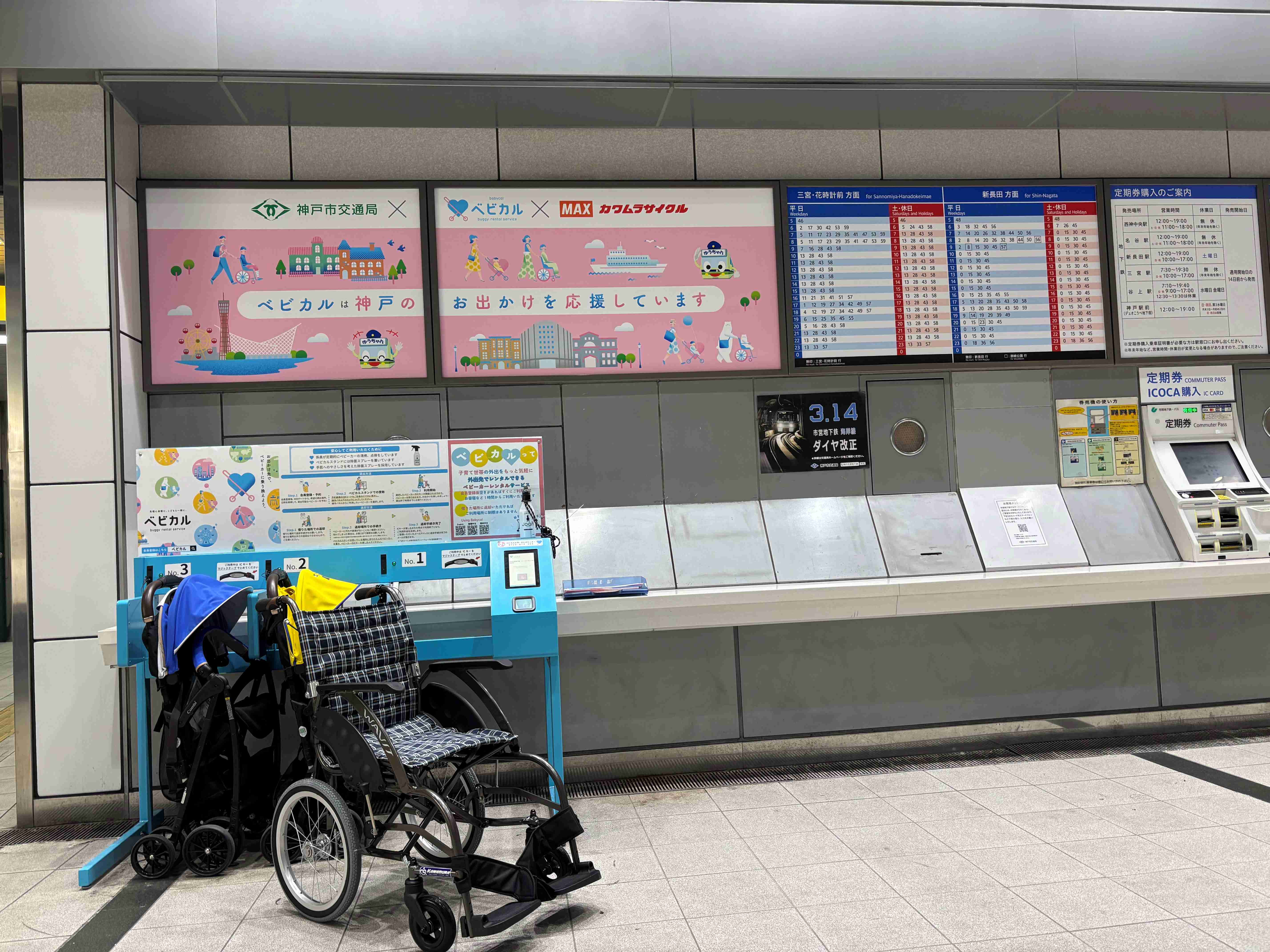 〇マックス株式会社及び株式会社カワムラサイクルとさらに連携を強化し、4月1日から、神戸市営地下鉄 ハーバーランド駅で車いすの貸出サービスを開始します。