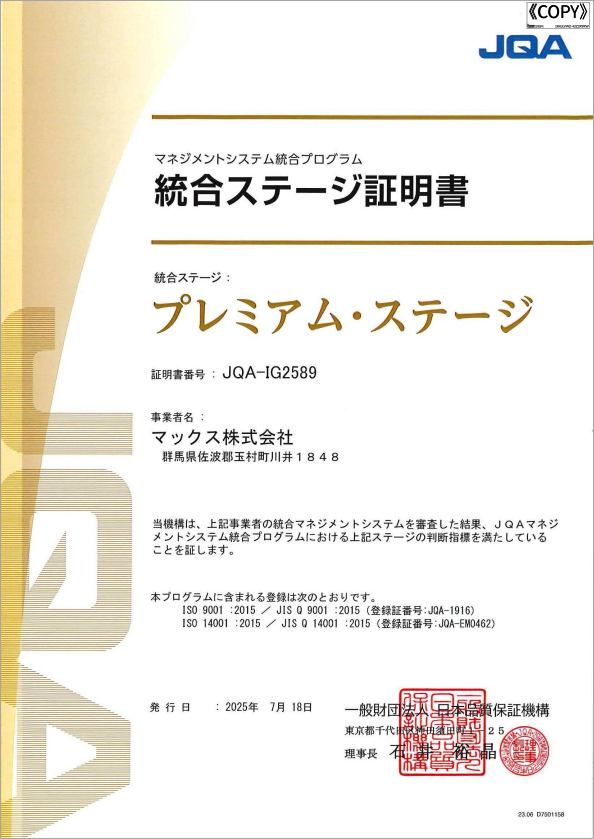 SCM推進に向けて、独自エンジニアリングによるNC自動化設備と、セル生産方式による高品質・高効率でフレキシブルな生産を進めています。また、コンプレッサや各種充電工具をはじめ、ビーポップ、ラベルプリンタなどの事務機械、オートステープラも生産するメカトロニクス工場で、マックスの主力工場です。
