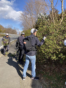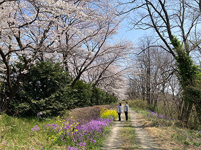 さらに、吉井拠点の外周にはマックスが所有する桜が並ぶ、約600mに及ぶ河川遊歩道があり、定期的なゴミ拾いや桜に巻きつくツタ・クズの除去を行い、地域住民の方々の憩いの場として利用できるようにしています。