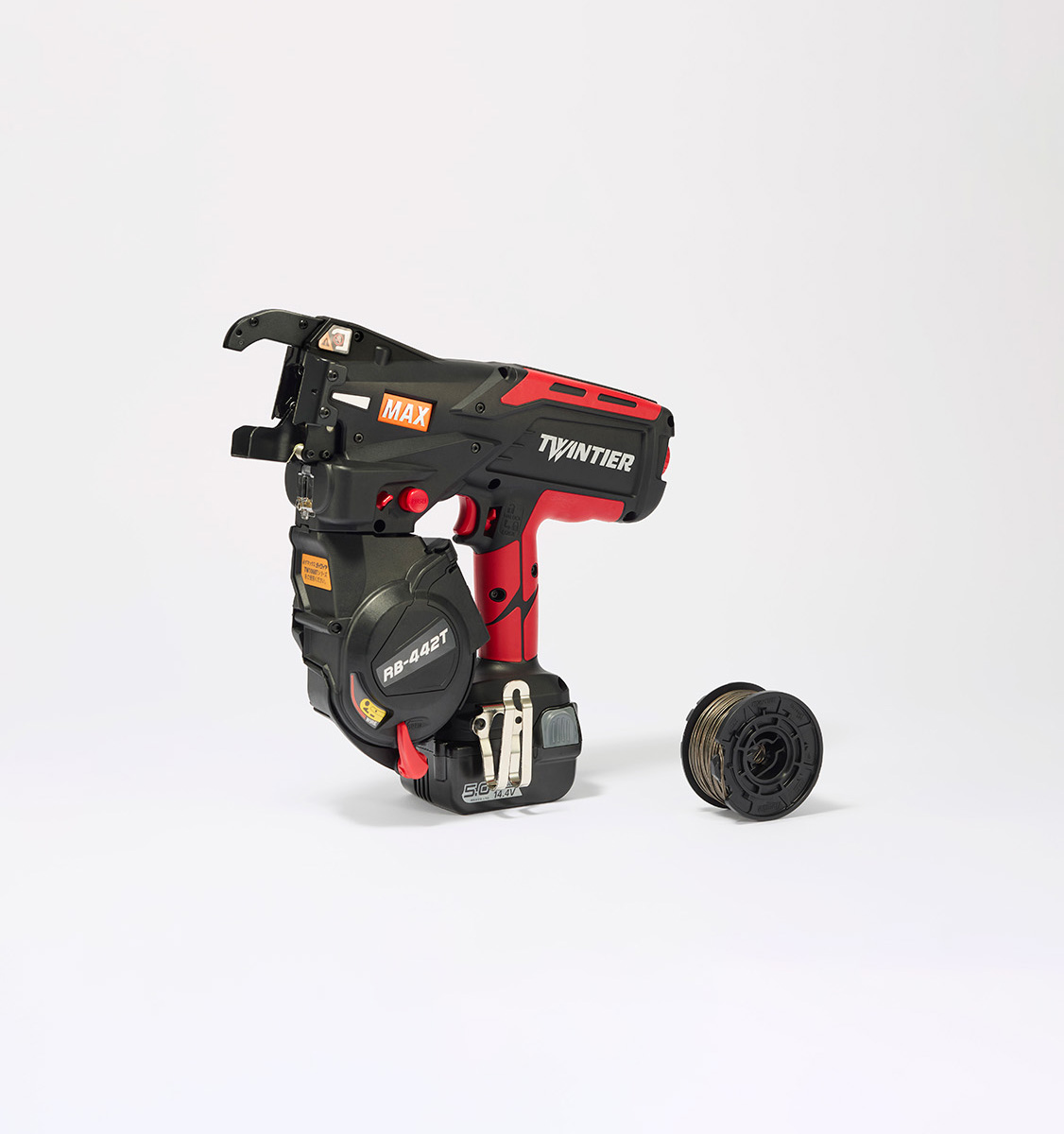マックスは、1993年に世界で初めて充電式鉄筋結束機を発売して以来、製品の改良を重ねてきました。なかでも、2017年に発売した「ツインタイア」は、手作業が多かった結束の現場を大きく変え、国内外の建設現場の作業効率向上や作業者の身体への負荷軽減に貢献しています。