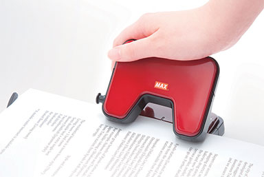 MAX's new technology for any workplace where metal staples are not allowed. "PAPYLER" is a stapler using paper-made staples.