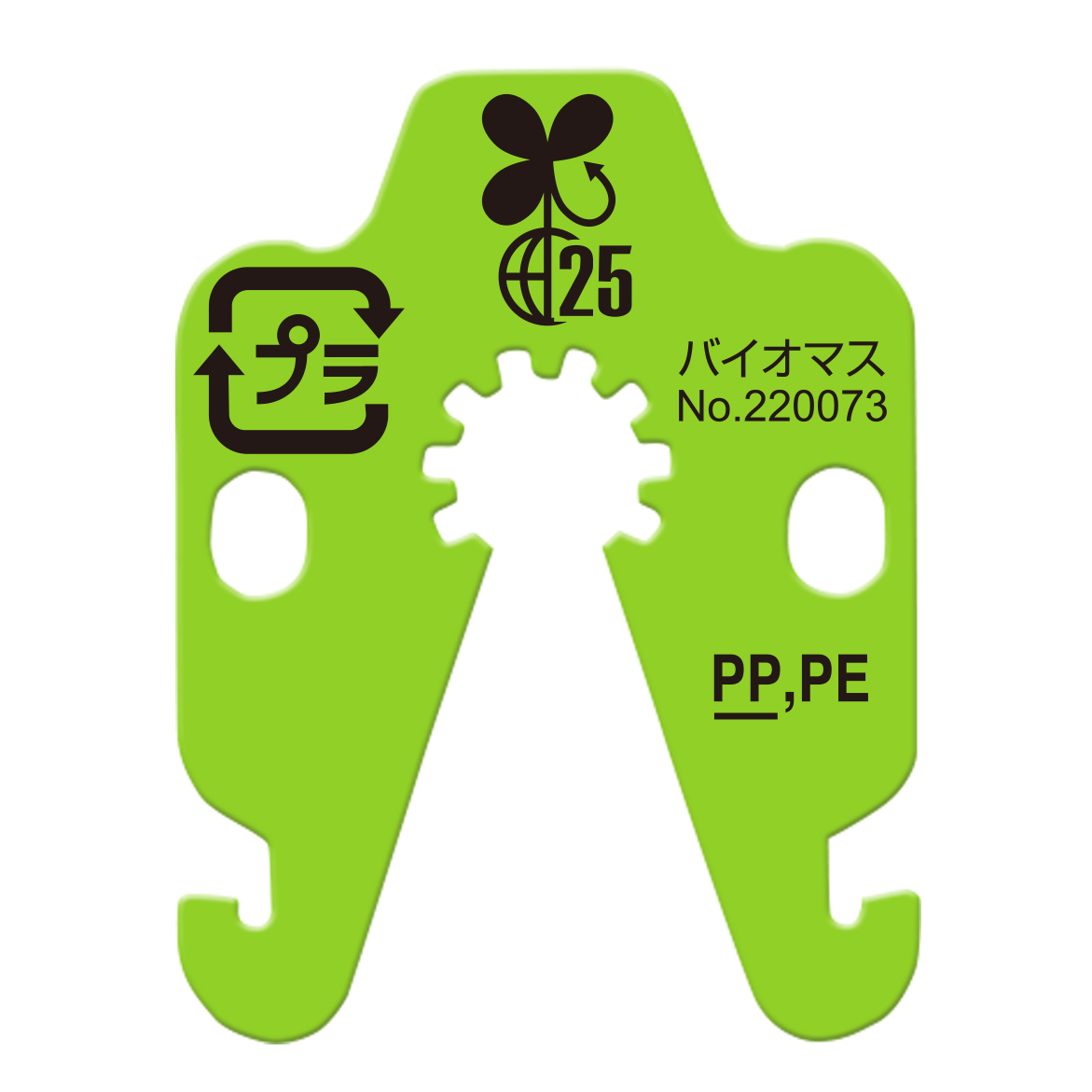 We have developed "Biomass Plastic Staple" and "Biomass CONI-CLIP" containing biomass materials as dedicated consumables for our "AIR PACKNER" and "CONI-CLIPPER" bag closing tools. Previously, we used petroleum-derived plastics, but we are now working to reduce our environmental impact by incorporating a mix of plant-derived biomass material. Biomass plastic containing biomass material has been drawing attention for its ability to curb emissions of greenhouse gases compared with petroleum-derived plastics.