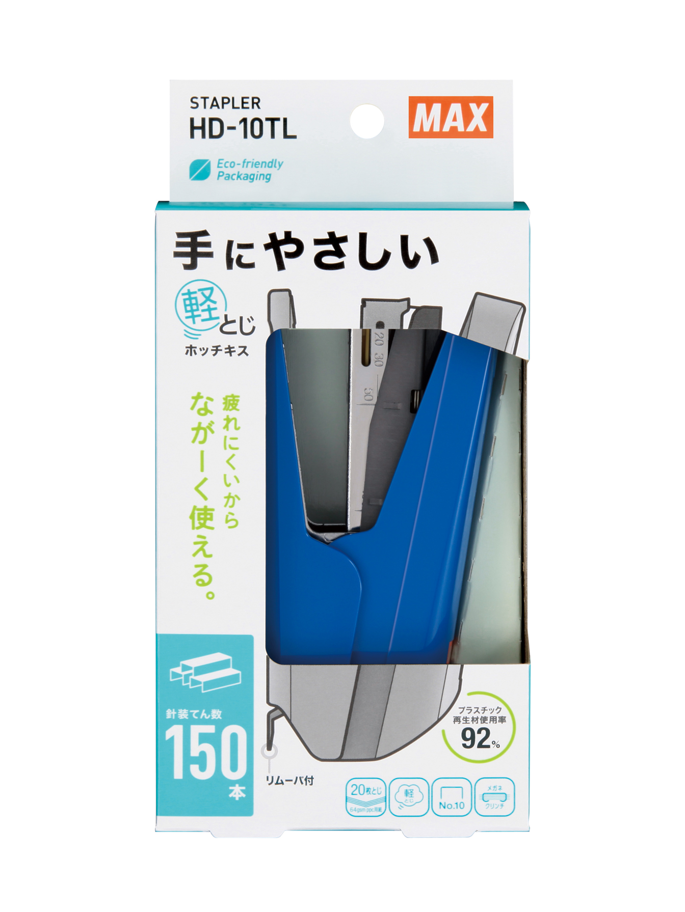 We launched a sustainable stationery series called "Re:max." With this series, we will contribute to the environment by developing stationery that moves away from plastic items and packaging and uses environmentally friendly materials. Our first initiative is the renewal of the "HD-10TL" stapler, changing from plastic packaging to cardboard.