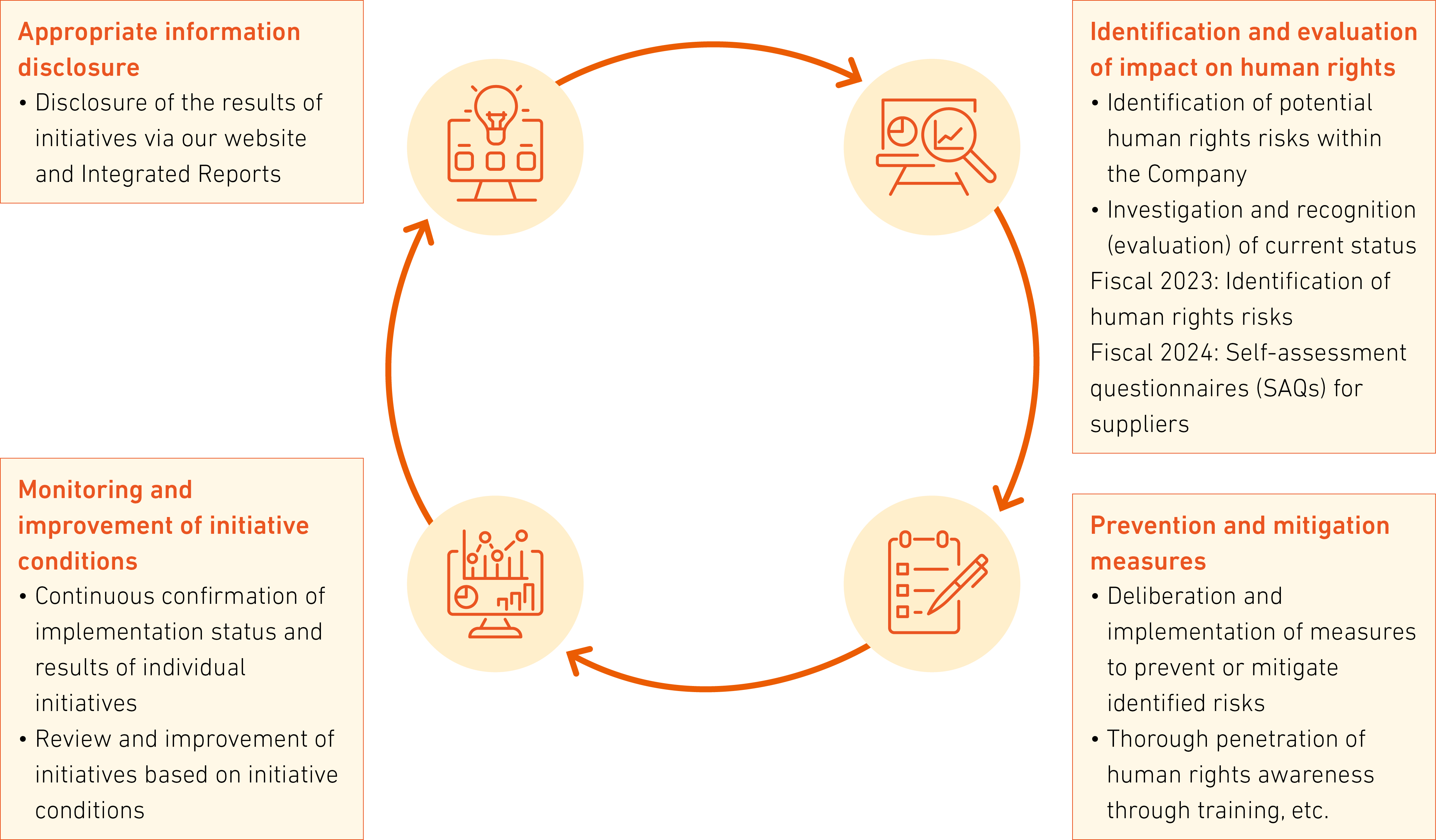 In fiscal 2025, we plan to conduct human rights training for suppliers to improve their basic knowledge regarding human rights.By increasing supplier awareness of human rights issues, we will help promote supplier initiatives and strive to reduce human rights risks throughout the supply chain, including tier 2 suppliers.