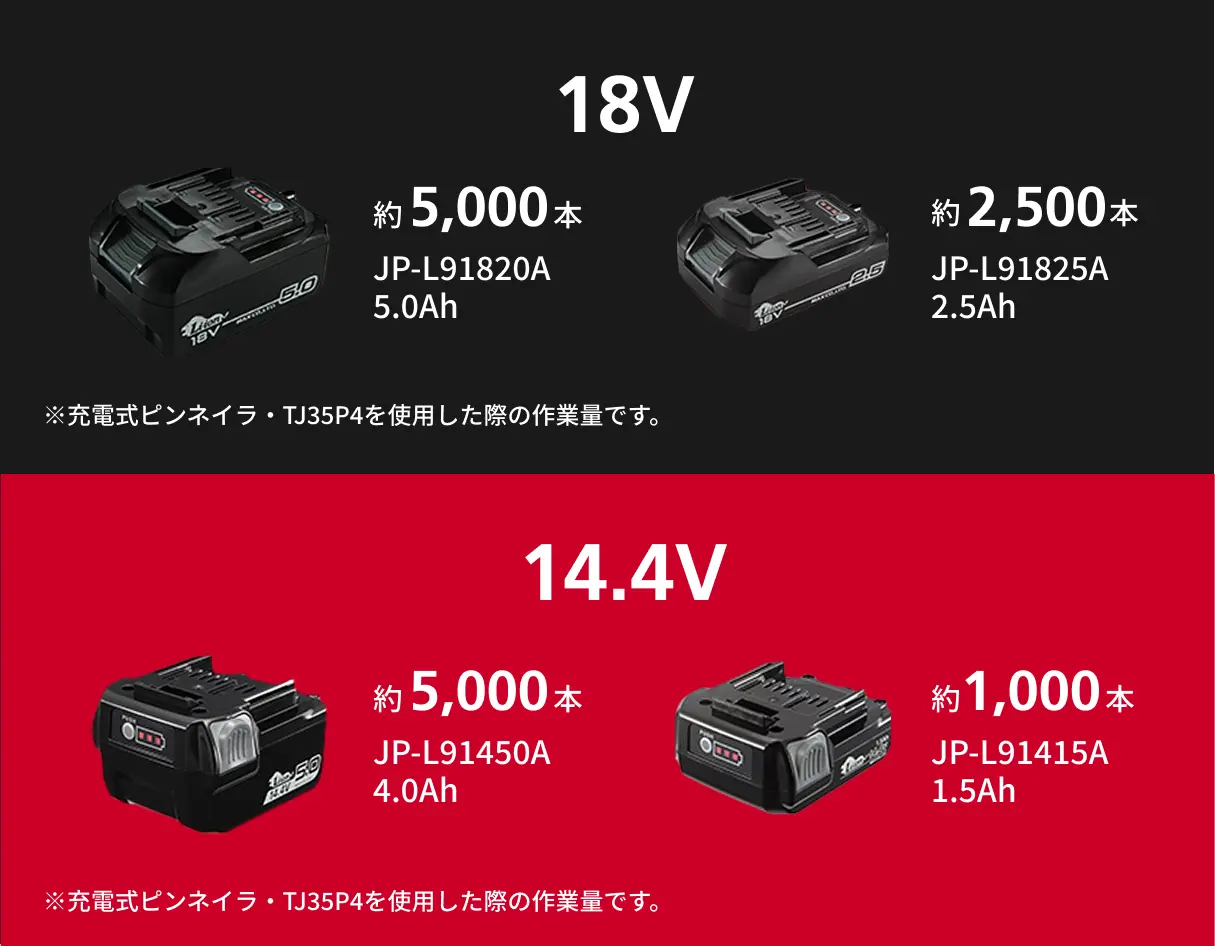 機種によっては14.4V/18V電池パック兼用で使えます。