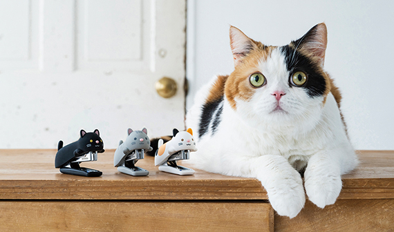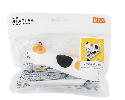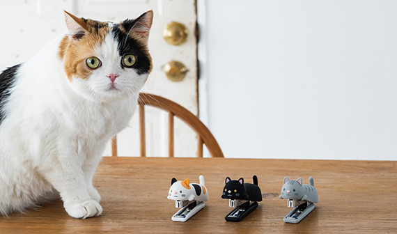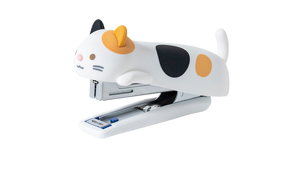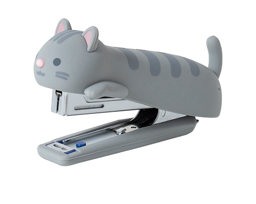 - ねこをモチーフにした、シリコンカバーによるかわいらしいホッチキス