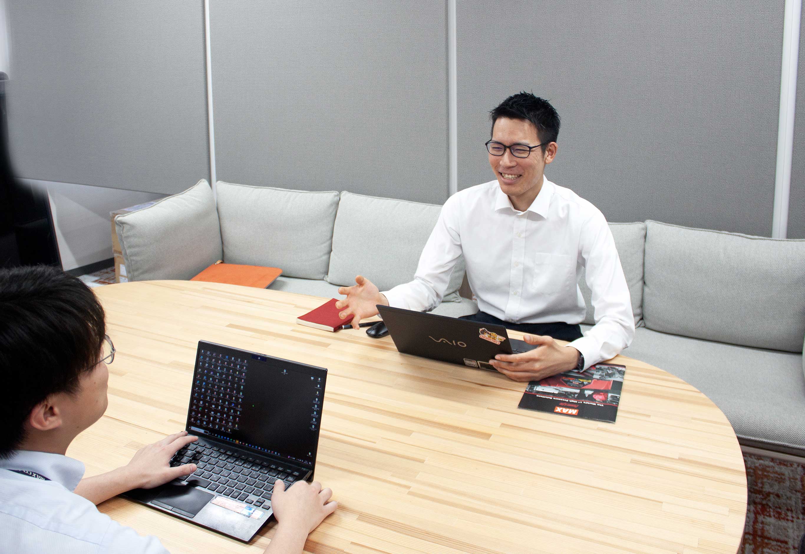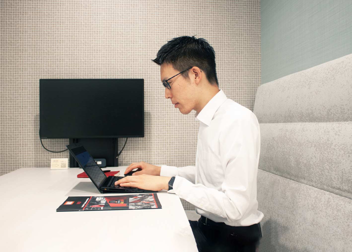 海外営業部では、フレックスタイム制やリモートワーク制を利用する事ができ、ライフスタイルに合った働き方ができます。私は、満員電車を避けるためにフレックスタイム制を利用して、ストレスなく通勤しています。