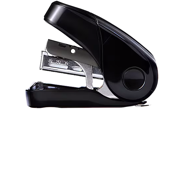 握り心地・綴じ心地、綴じた時の音の質感も良く、モダンな印象のデザインが気に入っています。ヨーロッパでも品質の高さを評価され、よく売れている製品です。また、使用する針「マックス針No.10」は、マックスが開発した規格であり、世界中で愛用されているという点も誇るべきポイントです。