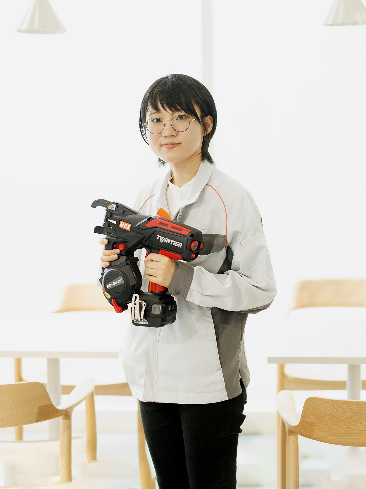 入社当時から携わっている、鉄筋結束機です。現場にユーザー調査に行き、現場管理者様や職人さんとお話しすることも多いのですが、「これまでよりも作業が早くなり、楽になった」「製品が使いやすく、壊れにくい」のようなお褒めの言葉が糧になります。このようなユーザー満足度の高い製品を誇りに思います。