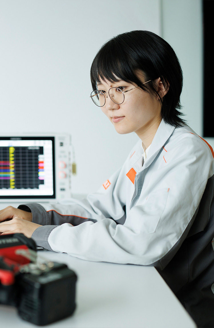 主に電動工具の稼働データの分析を行っています。データ分析といっても、業務範囲が広く、多岐にわたります。一つ目は、日々の市場機稼働データの監視です。異常時にはメンテナンス方法を提案、発生現象と稼働データを紐付けて、故障事例のデータを蓄積します。次にユーザーレポートの作成です。ユーザー調査の前に機械の稼働データを分析し、作業改善提案のレポートを作成します。他には、長期的なデータ分析を通じて新たな視点で結果を社内試験や設計にフィードバックする、分析結果やユーザー調査から得た知見をアプリ設計に反映させるなどが挙げられます。ユーザー様に寄り添えている製品に関われること、業務での新たな発見やスキルの習得は、充足感を得られます。