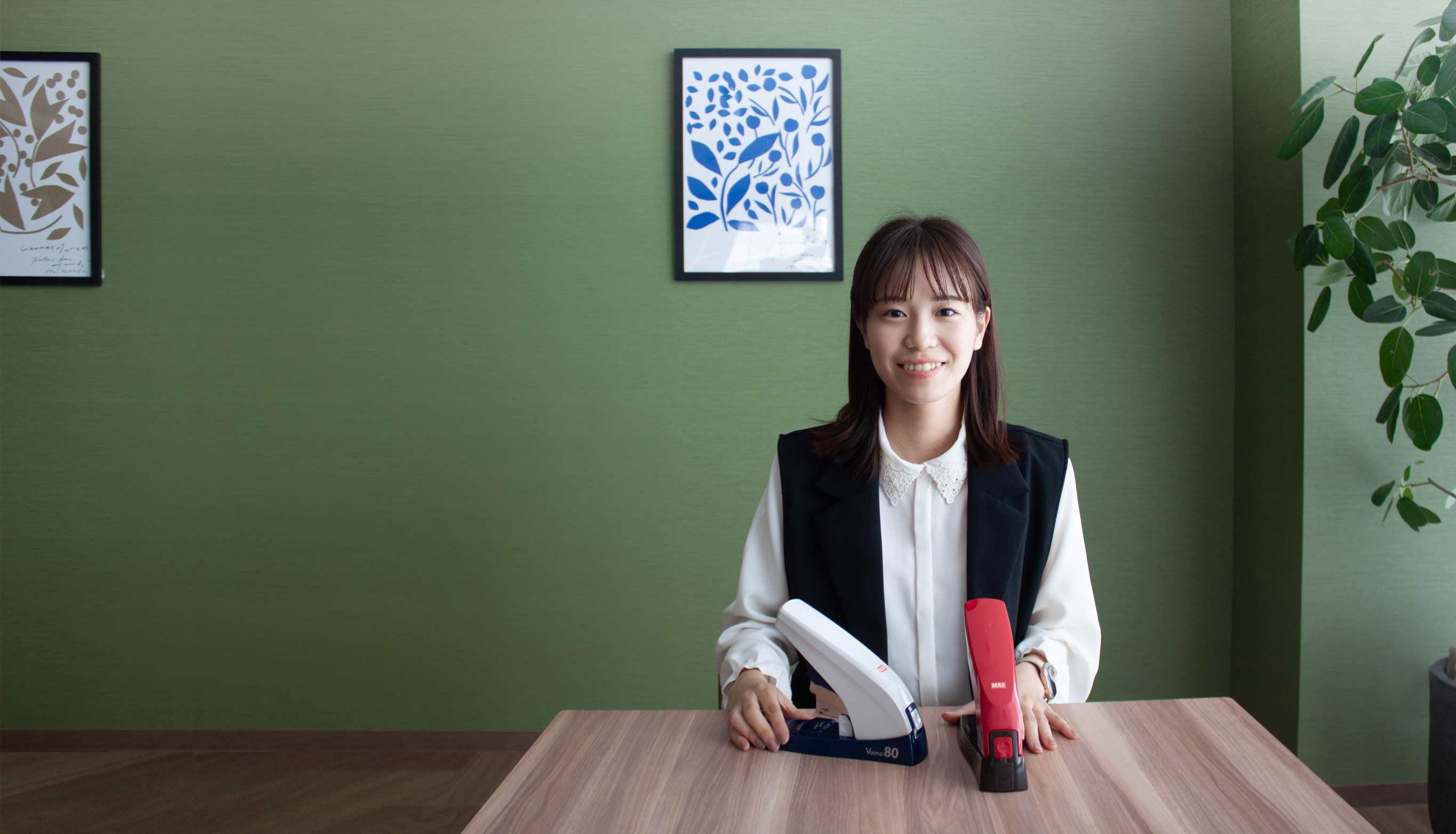 現在は大阪支店で、主にオフィスプロダクツ(ホッチキスや事務用品)の拡販営業をしています。具体的には、代理店様に出向いて商品知識を伝える勉強会を開いたり、実際にユーザー様を訪問して商品のデモや、販売店様と一緒にPR活動へ同行することもあります。