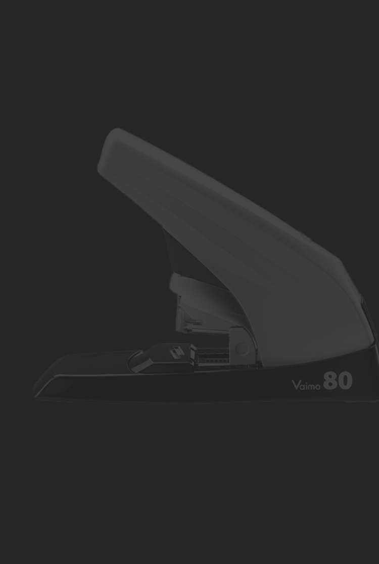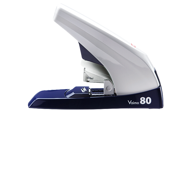 このホッチキスは専用の針や大型の針を使用せずに、市販のNo.11-1MやNo.11-10mmの針で、2~80枚まで紙をとじることができます。80枚の紙をとじる際も、押し込む力はほぼ不要!お客様のもとへ実機を持参してPRした際は「ええ!?」とそのとじる軽さに驚かれた時の表情を見るのがとても好きです(笑)。