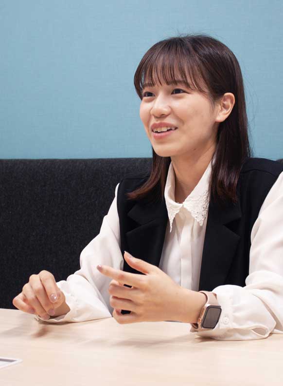 風通しの良いところです。若手でも意見を言いやすく、自分で考えた施策にもきちんとアドバイスをもらえるため、常に成長できる環境があります。壁にぶつかった時やささいなことで悩んだ時は「成長するタイミング」だと思い、一度周りの人に相談してみよう、と一人で抱え込まずに相談できる環境が、働きやすさにつながっています。