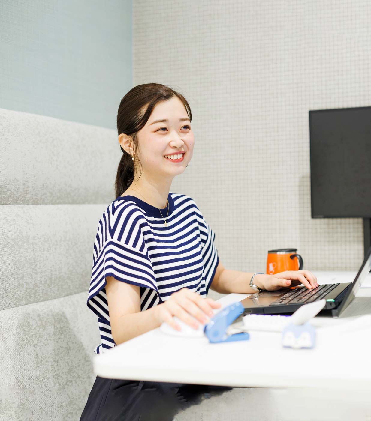 経理部は社員の経費精算処理を担当しているため、経費についての問い合わせをすることも多く、本社ビルの社員とはほとんどが顔見知りです(笑)。顔がわかると業務もスムーズですし、社内ですれ違ったときに声をかけてもらえると親近感がわきます。最近は他拠点のメンバーともオンラインで顔を合わせる機会が増え、より円滑なコミュニケーションを取れるようになりました。こういったあたたかみのある雰囲気も働きやすさの一つです。