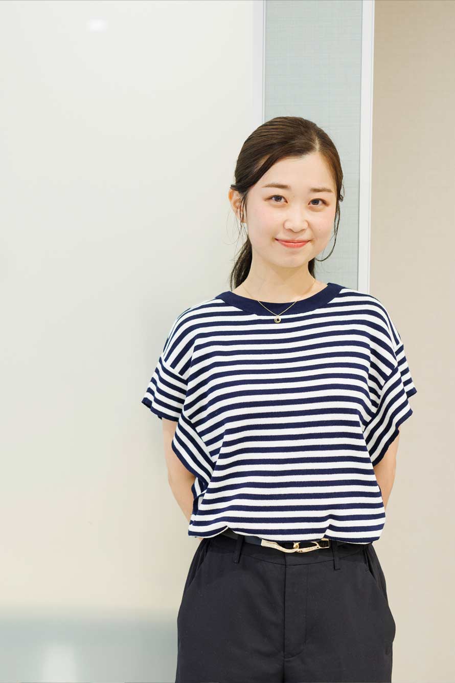 経理部では紙資料の扱いが多いため、ホッチキスを頻繁に使用します。サクリフラットは、軽い力で分厚い資料でも難なくとじることができ、手になじむ小さめのフォルムが気に入っています。また、新入社員の頃、先輩社員が青色のサクリフラットを用意して迎えてくれたことが嬉しく、思い入れのある製品になりました。