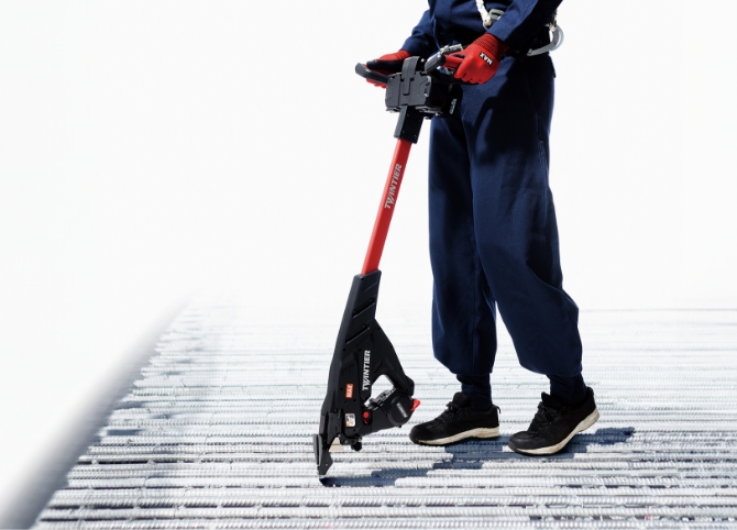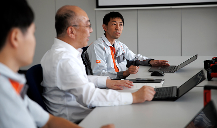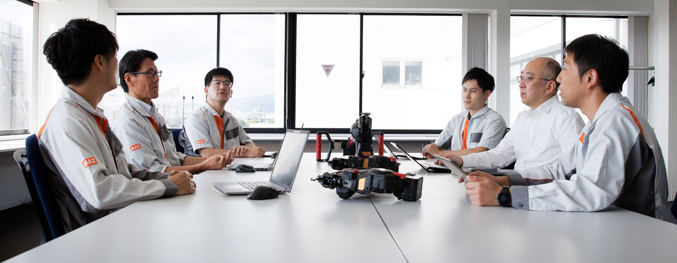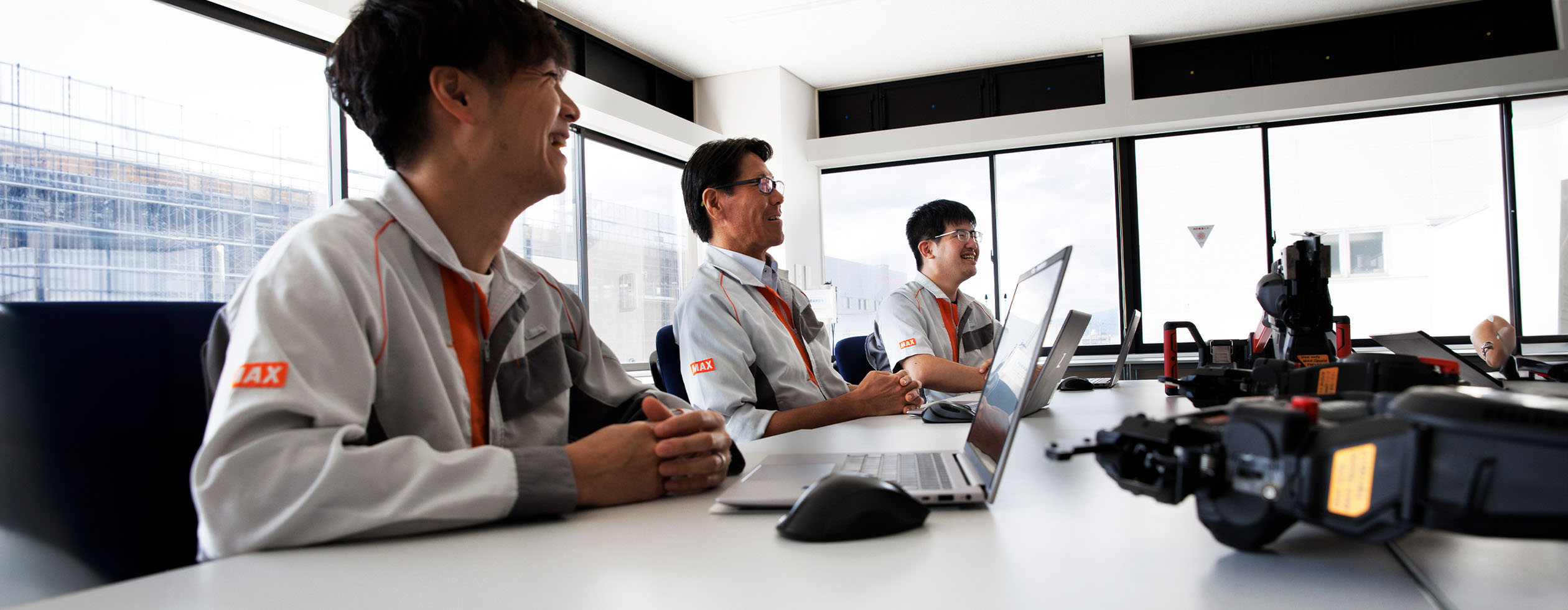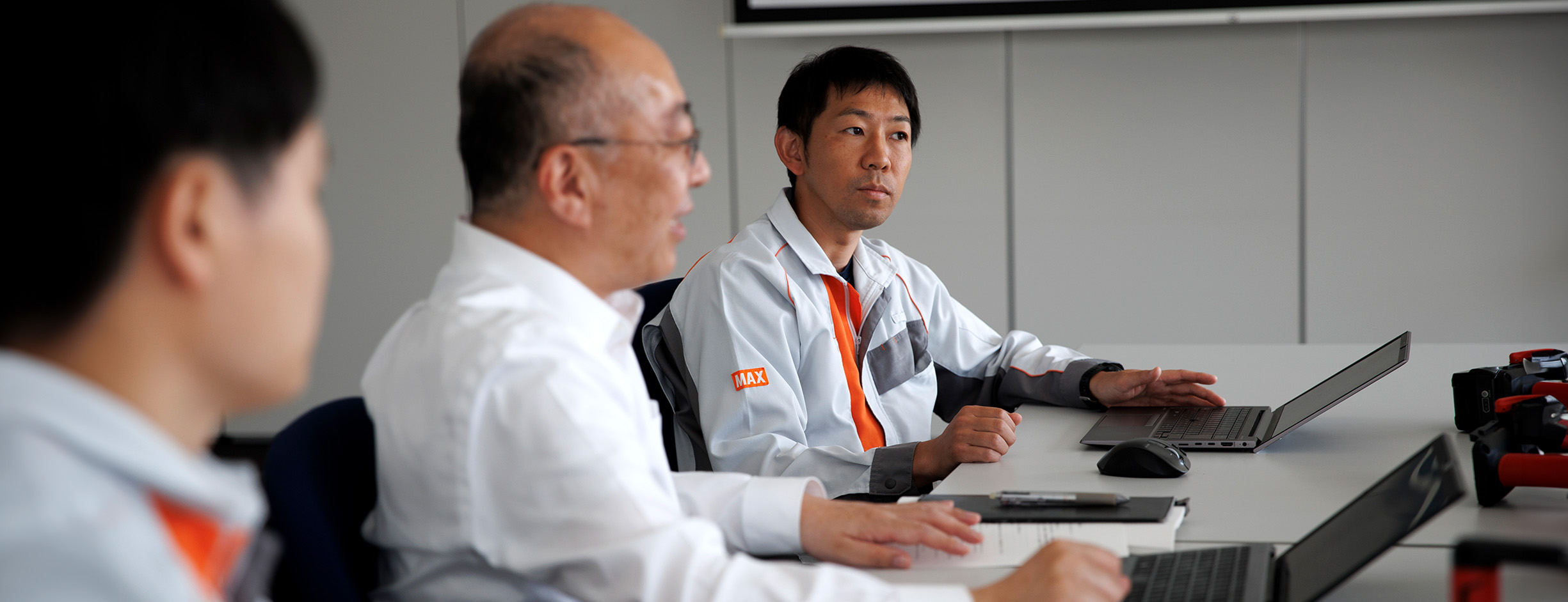 1993年、マックスは世界初の充電式鉄筋結束機を発売し、業界のスタンダードを打ち立てました。主力製品「ツインタイア」シリーズは、大幅な作業効率の向上に貢献し、国内外で多くのお客様に愛用されています。その後継モデル「ウォーカーモデルタイプ」は、現場のニーズに応えながら改良を重ね、身体的負荷を軽減するために腰を曲げない姿勢で結束作業が行えるという、革新的な進化を遂げました。製品がどのように誕生し、発売に至ったのか。現場を大切にするマックスならではの開発ストーリーに迫ります。