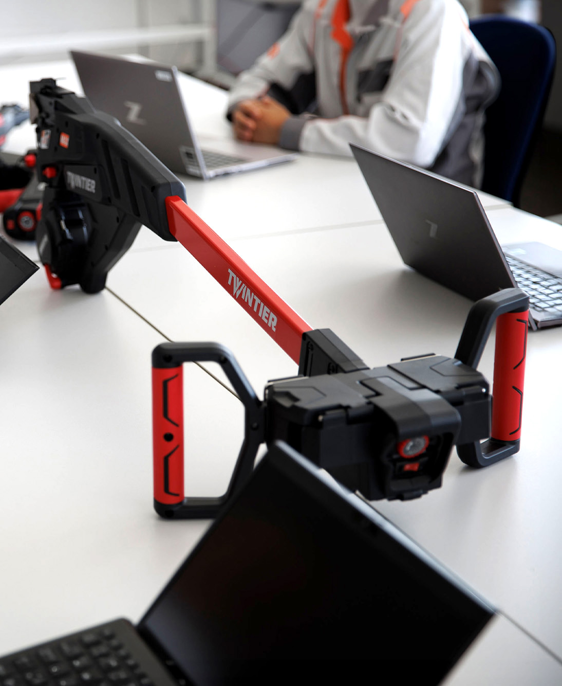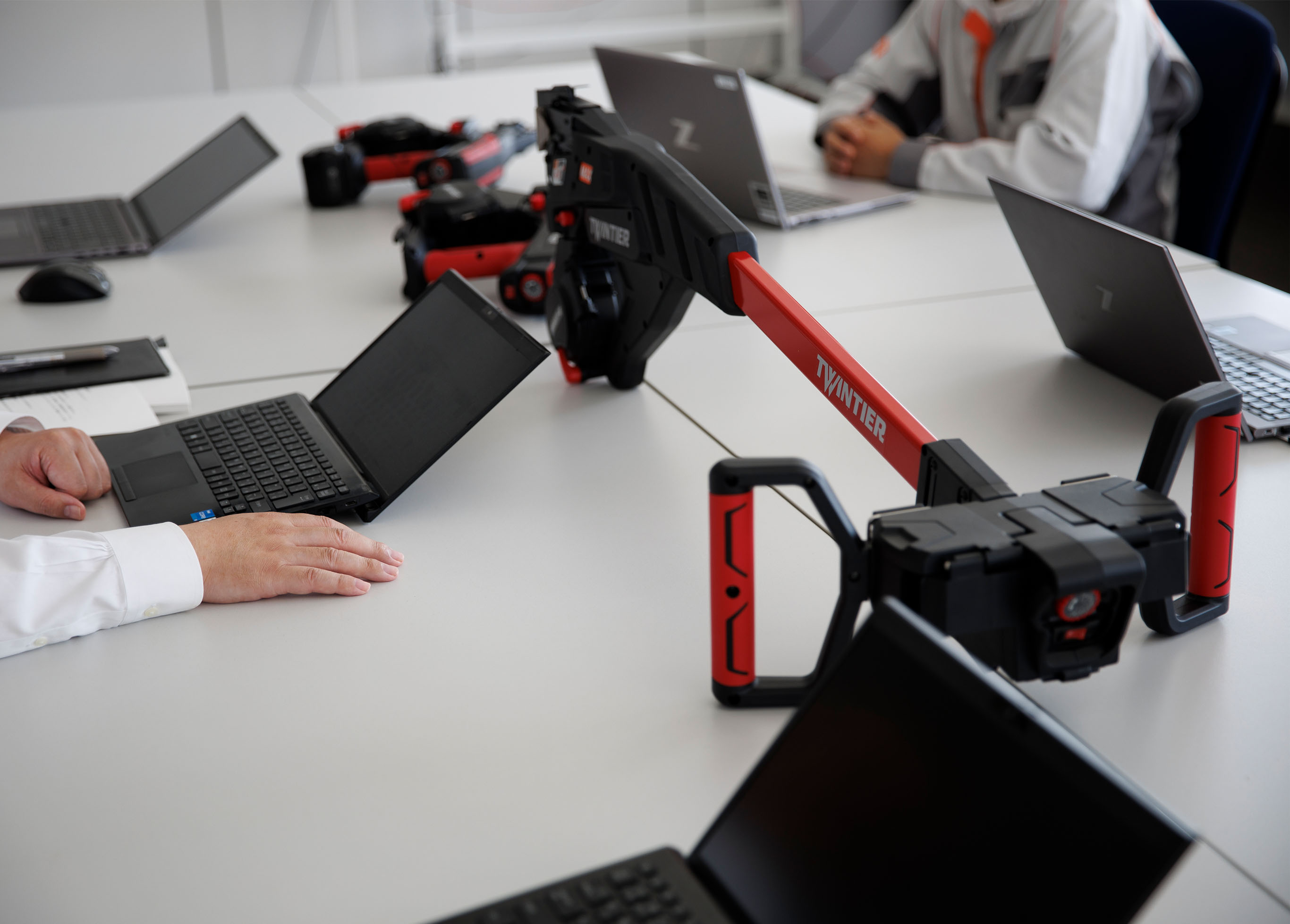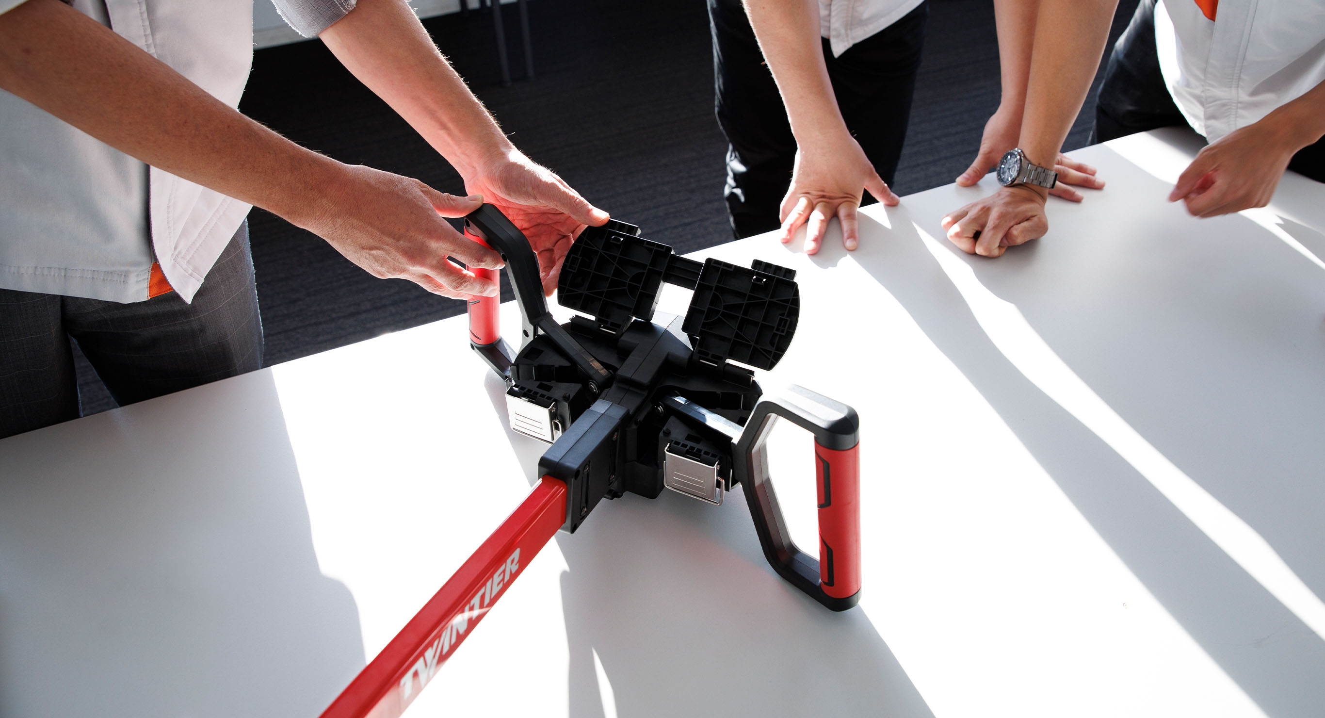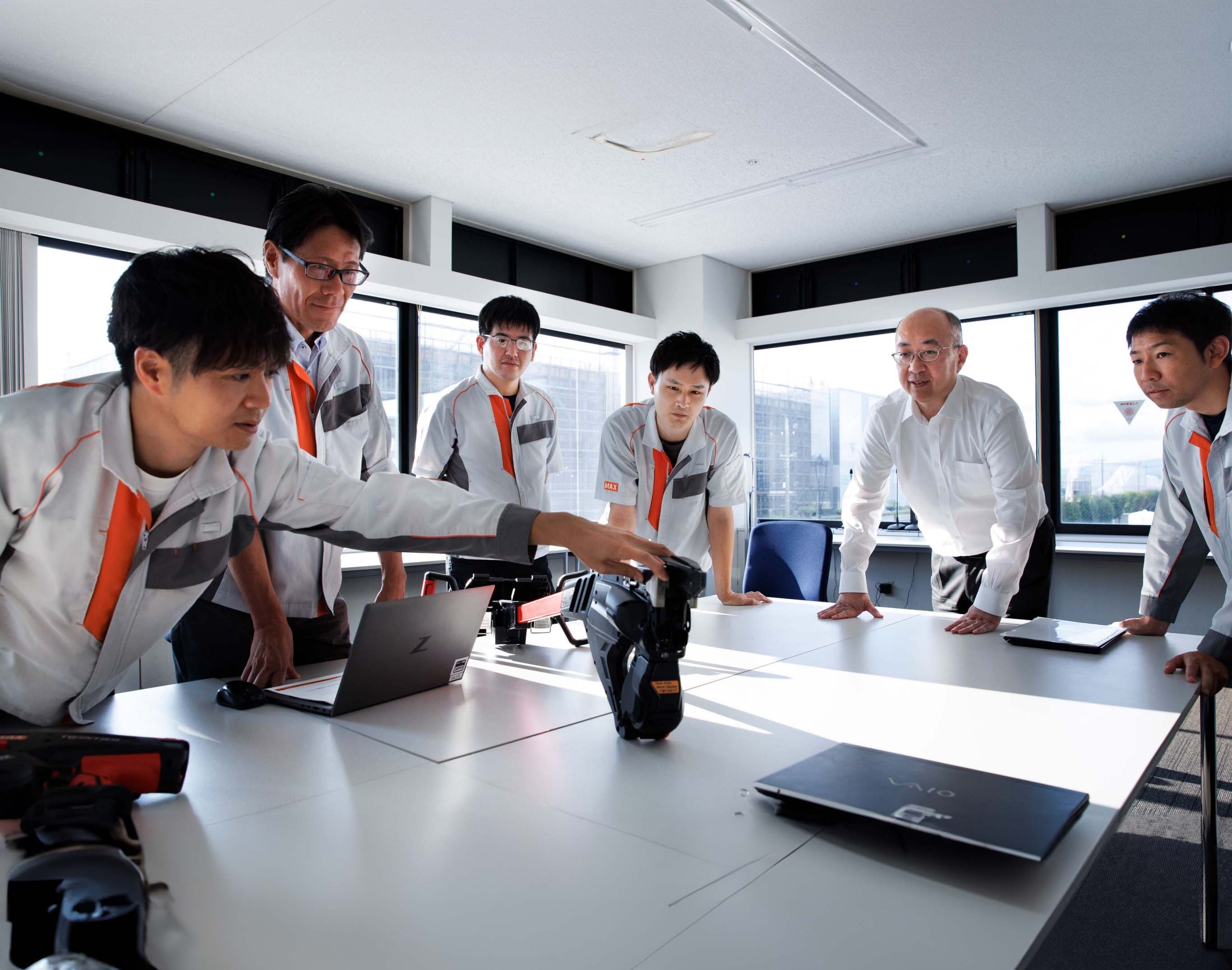 1993年、マックスは世界初の充電式鉄筋結束機を発売し、業界のスタンダードを打ち立てました。主力製品「ツインタイア」シリーズは、大幅な作業効率の向上に貢献し、国内外で多くのお客様に愛用されています。その後継モデル「ウォーカーモデルタイプ」は、現場のニーズに応えながら改良を重ね、身体的負荷を軽減するために腰を曲げない姿勢で結束作業が行えるという、革新的な進化を遂げました。製品がどのように誕生し、発売に至ったのか。現場を大切にするマックスならではの開発ストーリーに迫ります。